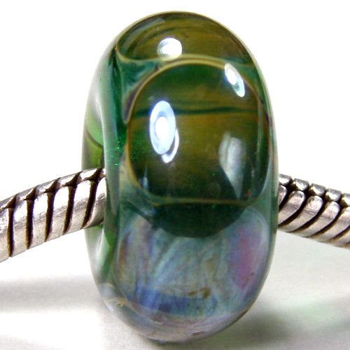 Teal Green with Dots Large Hole Lampwork Glass Slider Bead Handmade by Charlotte of Covergirlbead