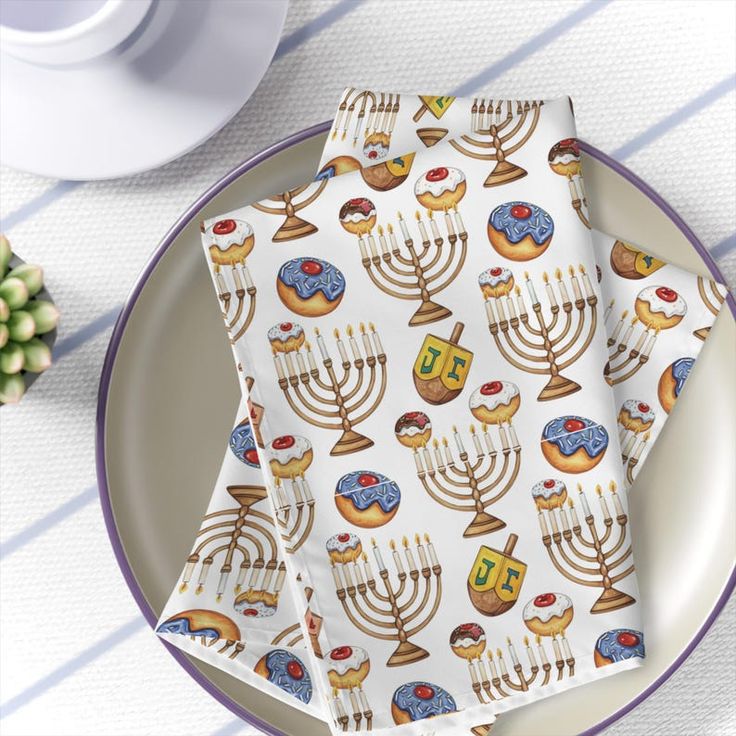 Blue Donuts, Sufganiyot & Menorahs Hanukkah Napkins Designed by Linda of LinorStore