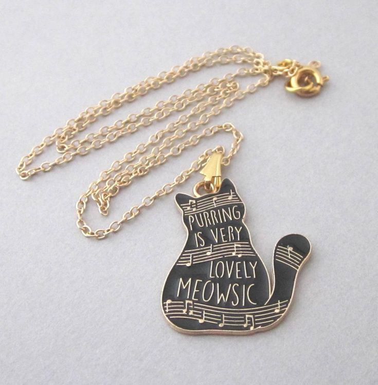 "MEOWSIC" Black Enamel Cat and Music Notes Necklace Handmade by Connie of Thesingingbeader
