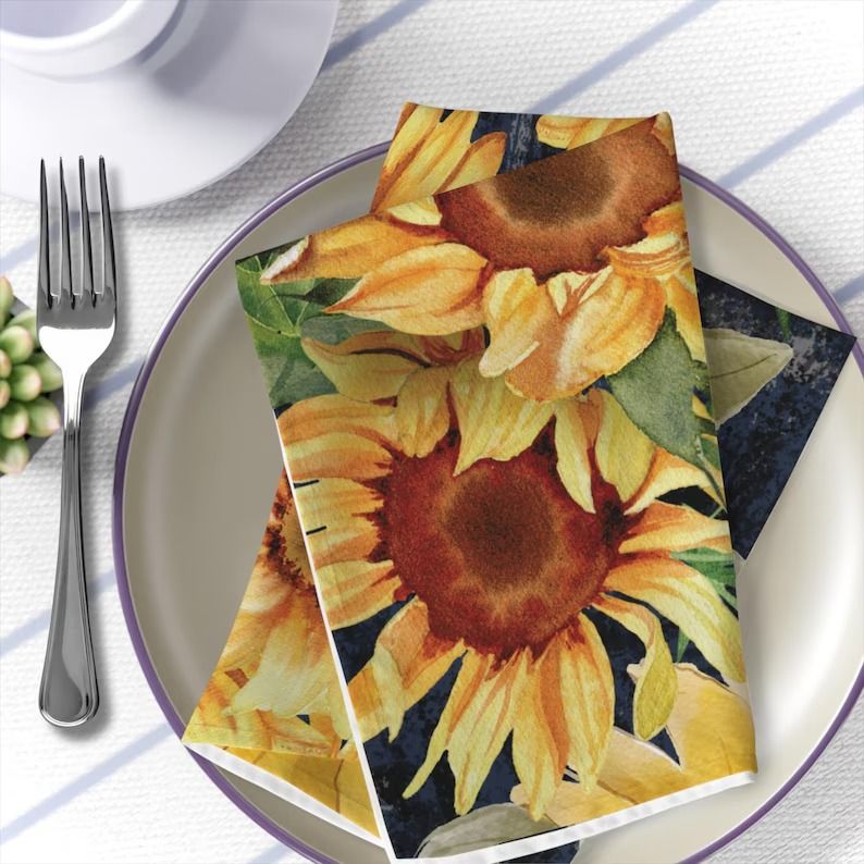 Sunflowers on Black Cloth Napkins Designed by Linda of LinorStore