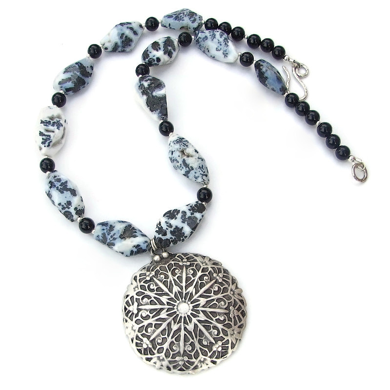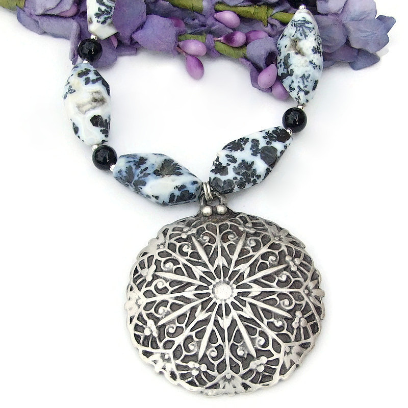 Mandala Necklace Tree Agate Onyx Filigree Handmade Ethnic Jewelry Gift