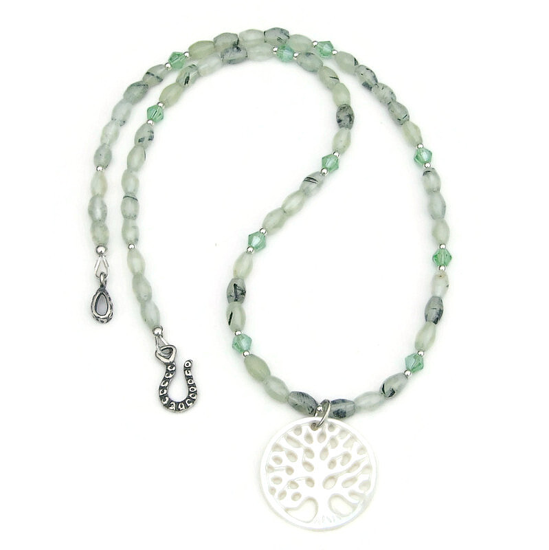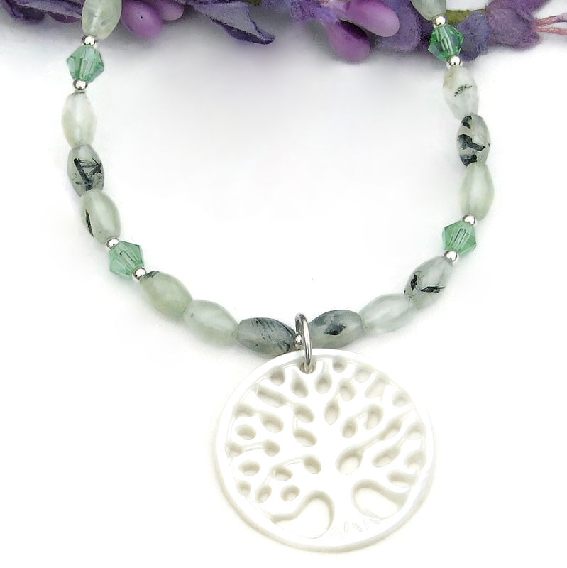 Tree of Life Necklace. Mother of Pearl Prehnite Handmade Jewelry Gift
