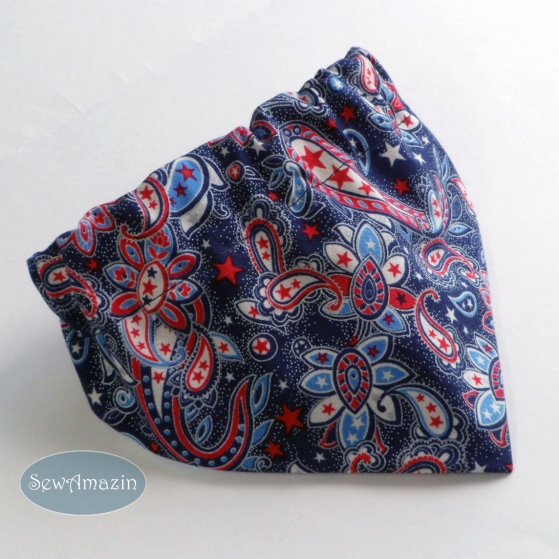 Blue Patriotic Paisley Dog Bandana, Scrunchie Style Handmade by Donna of SewAmazin