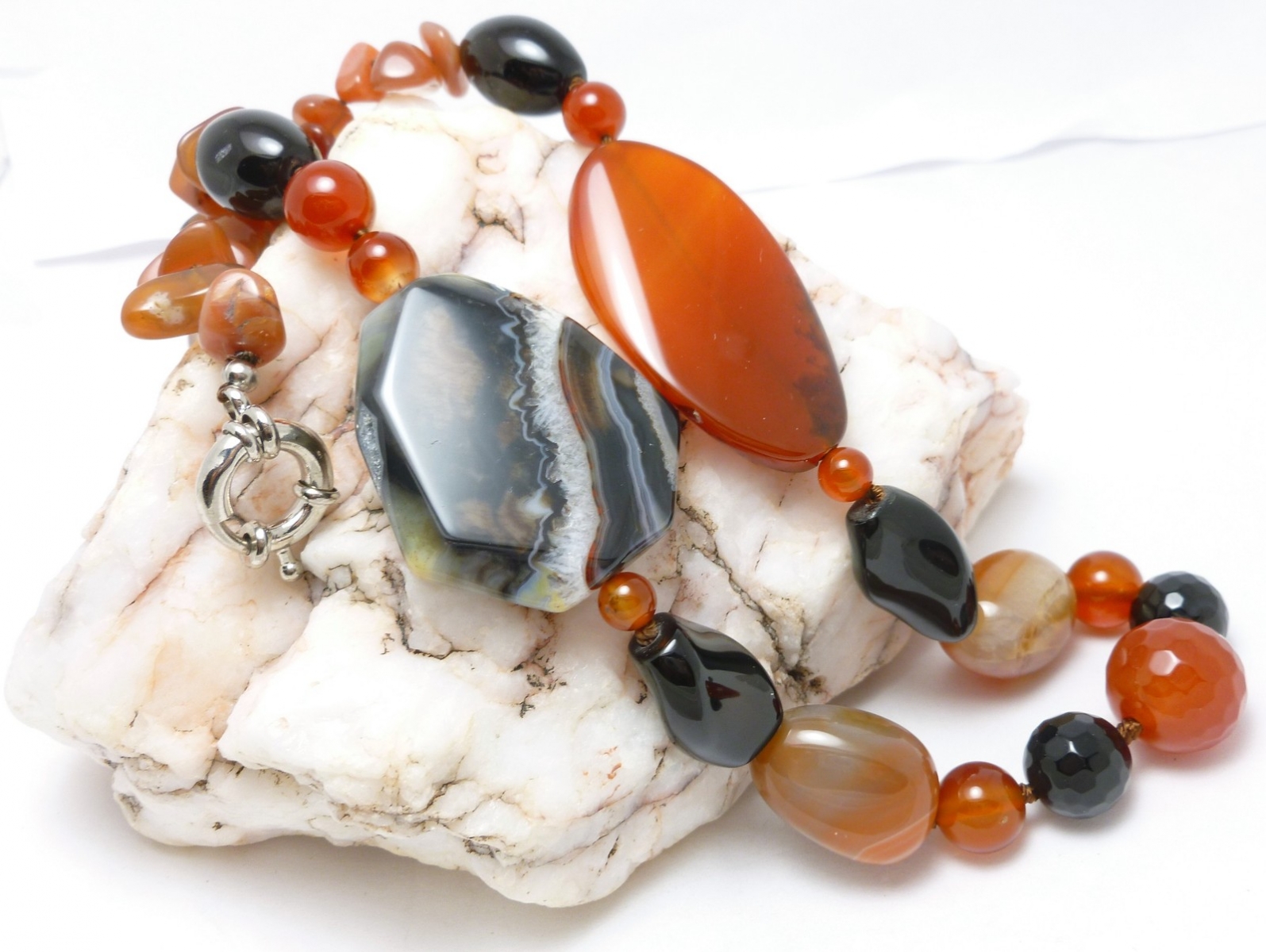 Chunky Brown and Yellow Botswana Agate with Copper Necklace Handmade by Kathy of KatsAllThat