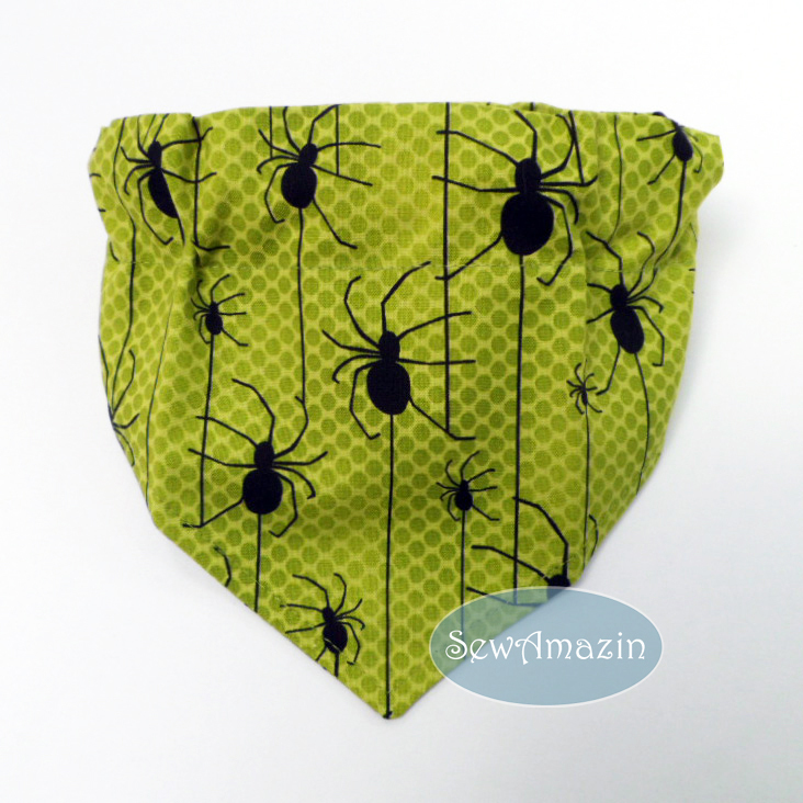Black Spiders Halloween Dog Bandana, Collar Slipcover Style Handmade by Donna of SewAmazin