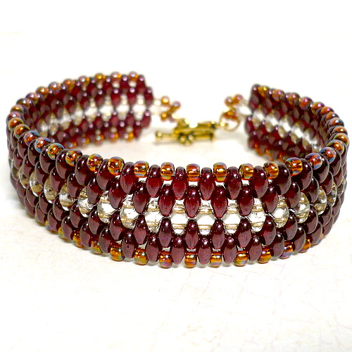 Red Wine and Dark Amber Beadwoven Cuff Boho Bracelet Handmade by Kathy of KatsAllThat