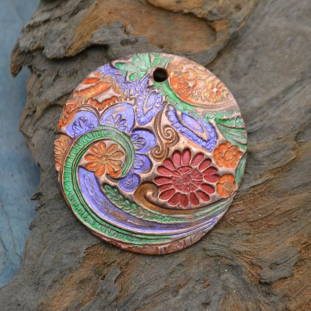 Large Flower Garden Copper Pendant Component Handmade by Kristi of KristiBowmanDesign