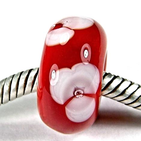 Red with White Flowers Large Hole Lampwork Glass Beads Handmade by Charlotte of Covergirlbeads