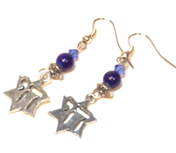 Chai / Star of David Earrings Handmade by Linda of lindab142