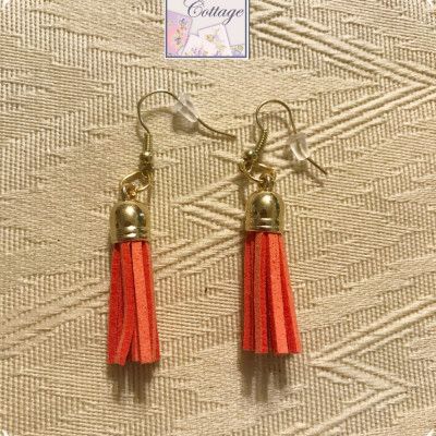 Peachy Orange Leather Fringe Dangle Earrings with Gold Wires Handmade by Jacki of Christie Cottage