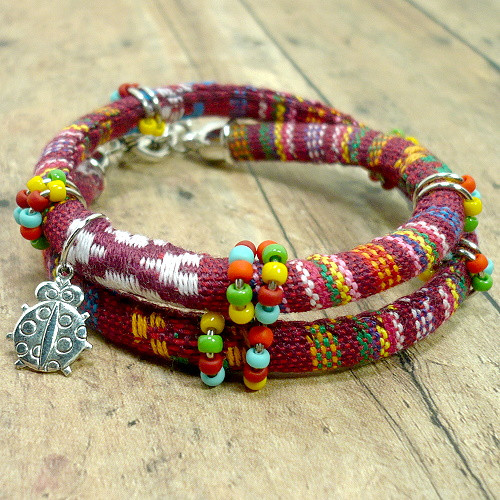 Beaded and Macrame Coil Wrap Bracelet Handmade by Andrea of Andrea Designs