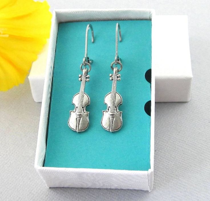 Silver Plated Pewter Cello Charm Earrings Handmade by Connie of Thesingingbeader