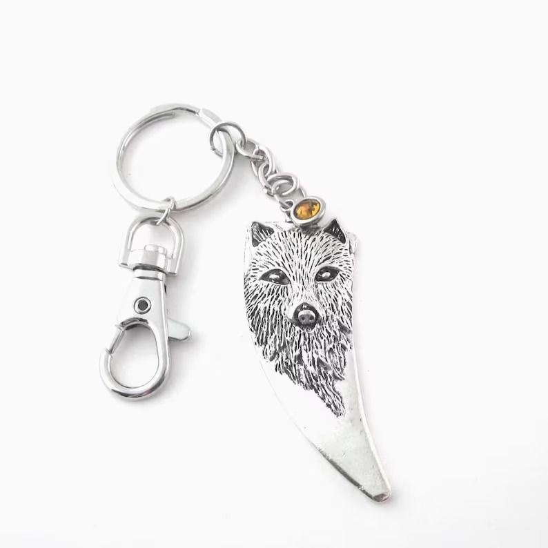 Wolf Tooth Keychain with Clasp and Personalized Birthstone Handmade by Connie of Thesingingbeader