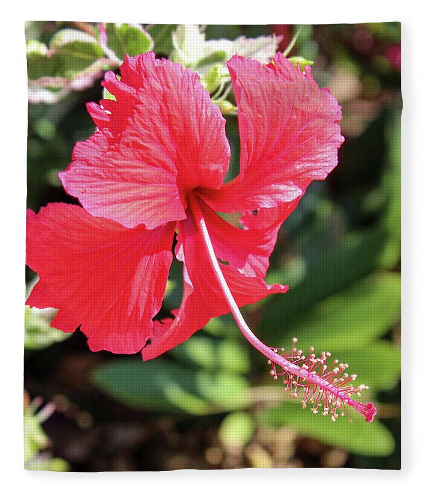 "Red Hibiscus Bloom" Fleece Blanket Photography by Joanne of JoanneCarey