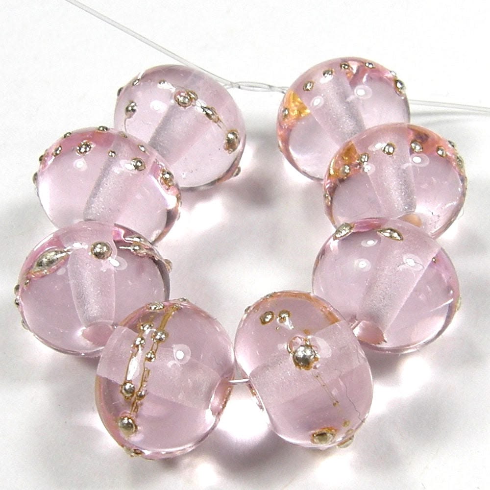 Rose Quartz Pink and Fine Silver Lampwork Glass Beads Handmade by Charlotte of Covergirlbeads