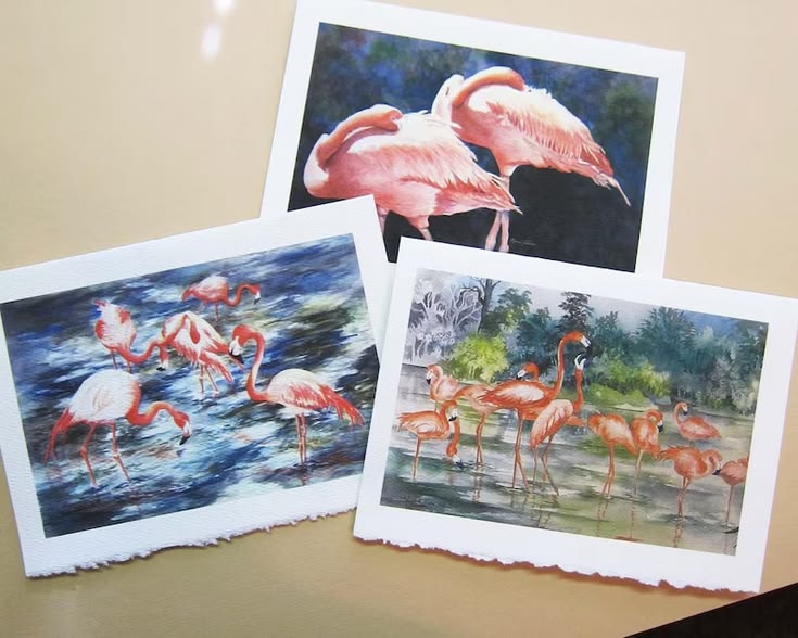 Flamingo Watercolor Print Note Cards, Set of 3, Handmade by Roxanne of watercolorsNmore