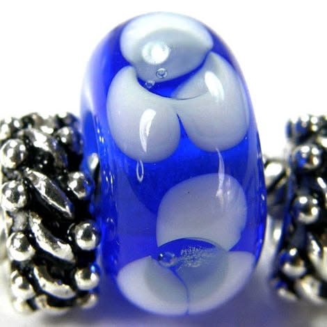 Blue and White Large Hole Lampwork Glass Flower Beads Handmade by Charlotte of Covergirlbeads