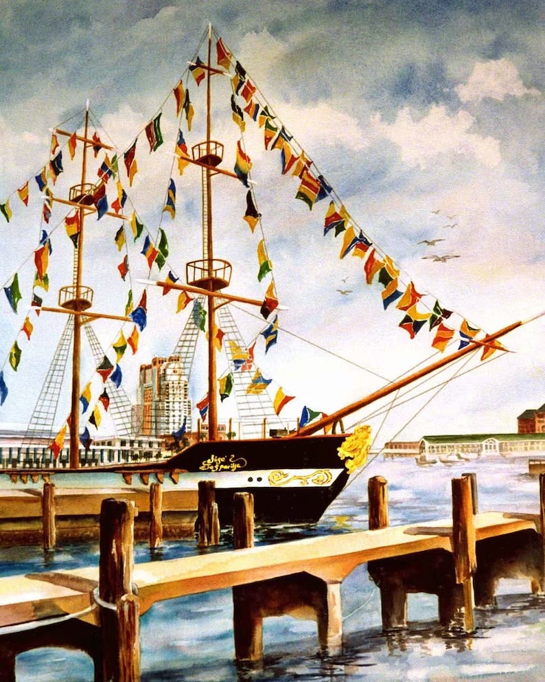 Historic Gasparilla Pirate Ship Watercolor Art Print Handmade by Roxanne of watercolorsNmore