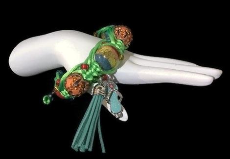 Boho Chic Adjustable Macrame and Beaded Bracelet Handmade by Andrea of Andrea Designs