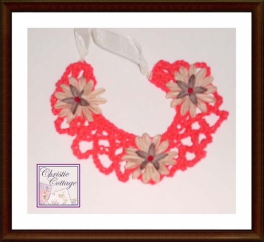 Red Bohemian Crocheted Necklace with Silk Flowers Handmade by Jacki of Christie Cottage