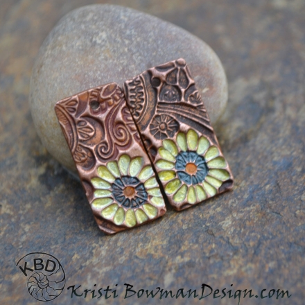 Colorful Copper Black Eyed Susan Rectangles, 1 Pair, Handmade by Kristi of Kristi Bowman Design