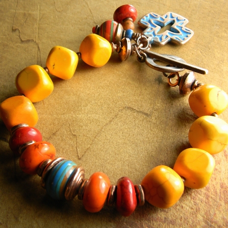 Even Minnesota gets very hot and humid in summer. And even though it's not quite summer, the heat is on here. Time for bright colors and cool drinks!!! Thank you, Catherine, for including my Tejana bracelet.