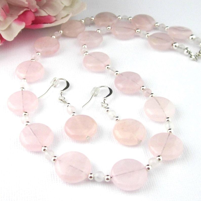 Rose Quartz and Sterling Silver Necklace and Earrings Set Handmade by Connie of Thesingingbeader