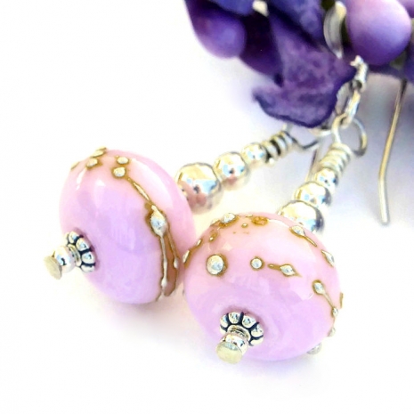 ENCHANTMENT - Thai Suns and Pink Lampwork Earrings, Valentines Garnet Silver Handmade Dangle Jewelry - $25.00
