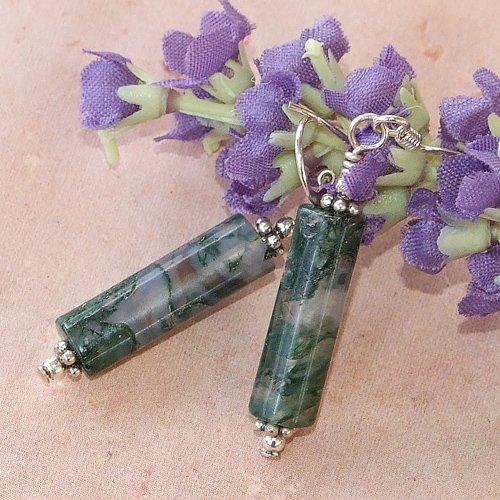 CANTICLE FOR THE FOREST - Moss Agate Green Sterling Silver Handmade Earrings