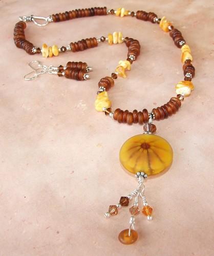 The MIRASOL necklace is a stunning handmade, one of a kind piece of jewelry that is perfect to wear for late summer or autumn . . . or anytime! Created with a lampwork boro glass sunflower, brown horn, amber, Swarovski crystals and sterling silver, it is truly a unique necklace. The MIRASOL necklace was handmade by Catherine of Shadow Dog Designs.